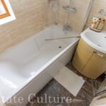 On the first floor there are three well proportioned bedrooms, storage cupboards and the pristine bathroom is fully tiled and fitted with a bathtub with shower over and wash basin. WC is separate from the family bathroom.