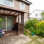 Exterior: Rear garden with patio and lawn, side access.